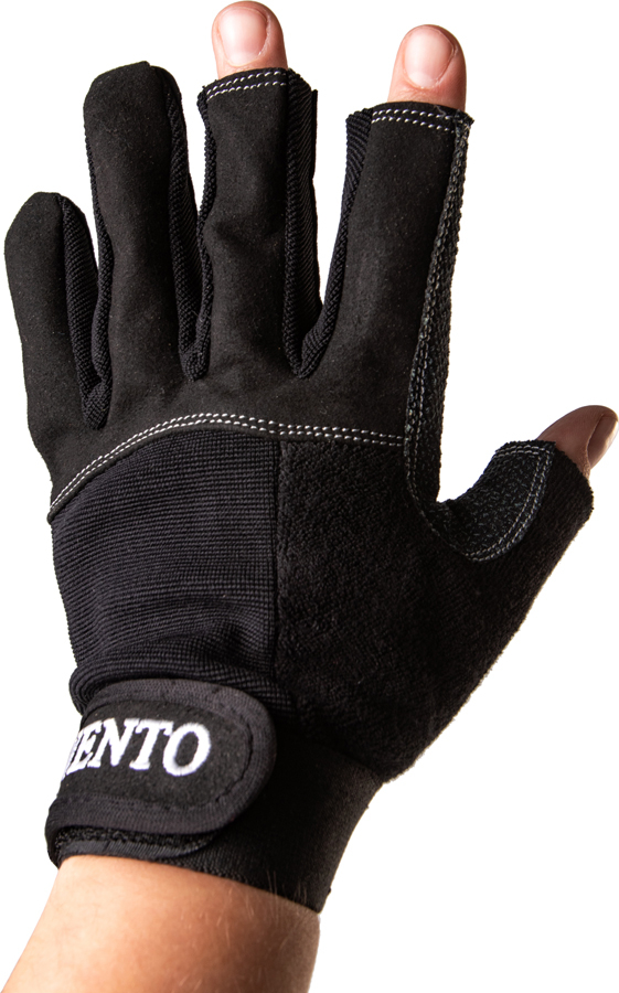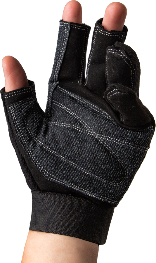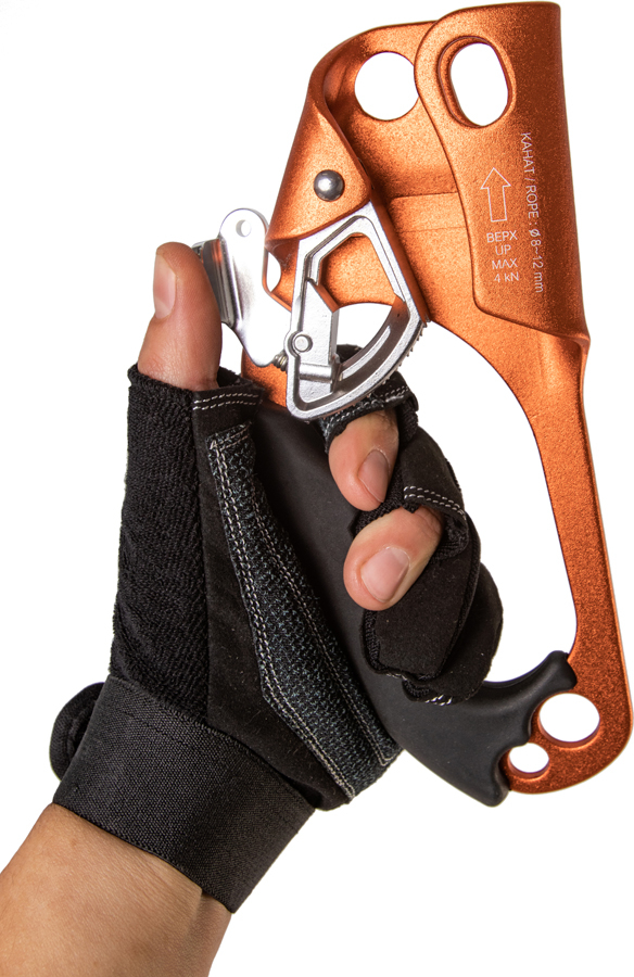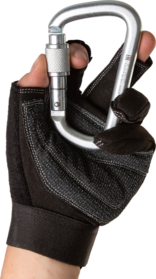 Перчатки для работы с веревкой с обрезанными пальцами для большего удобства работы со снаряжением.