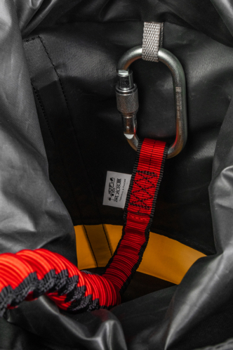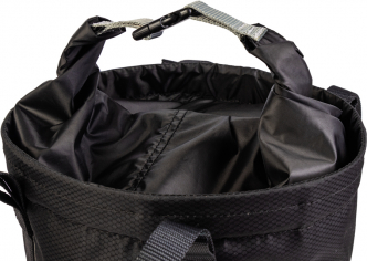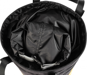 Сумка в форме «ведра» предназначена для хранения оборудования и инструментов и их транспортирования на высоте. На внешней стороне имеются ручки для переноски, а также петли для подвешивания сумки к привязи, рабочему сидению или анкеру. Внутри размещены петли для развешивания и страховки инструмента. Жесткая конструкция обеспечивает удобный доступ к хранимому оборудованию. Сумка снабжена удобной системой закрытия для предотвращения случайного выпадения предметов. Специальная тесьма поддерживает широкое раскрытие сумки. Дно изготовлено из износостойкой ткани с ПВХ покрытием, дополнительно усилено пластиком для увеличения срока службы изделия и удобства размещения сумки на земле. Через люверс из сумки удаляется вода.