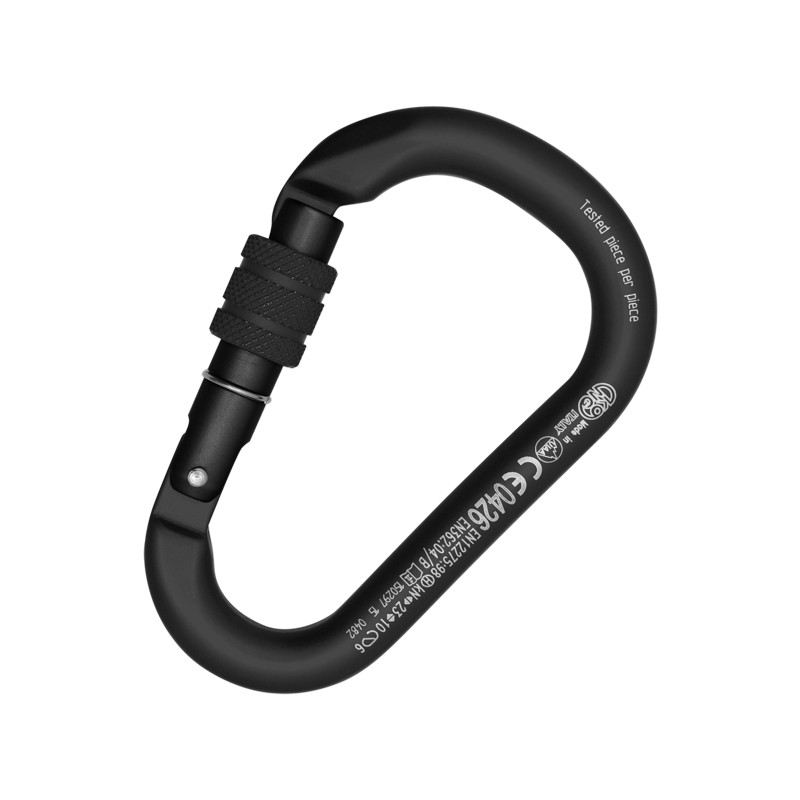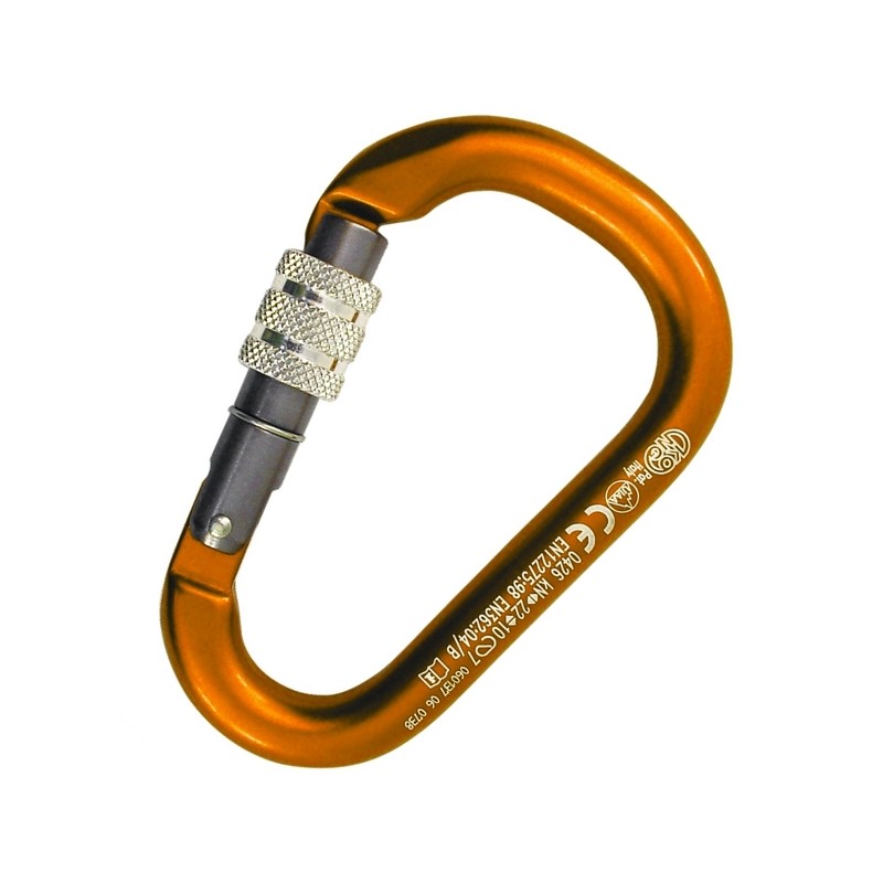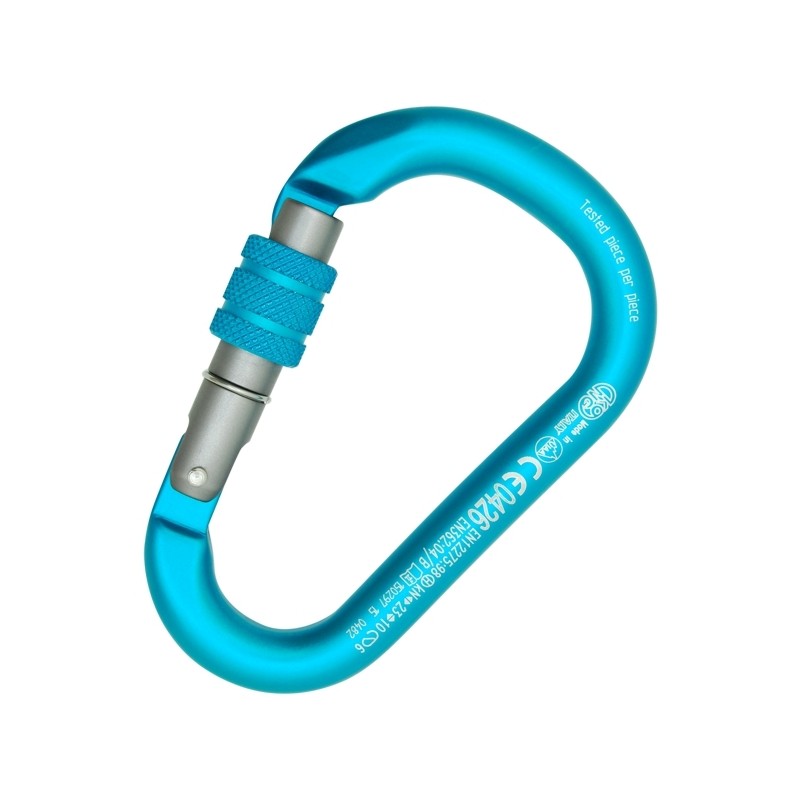 Карабин из сплава алюминия с резьбовой муфтой. Может использоваться со всеми анкерными и страховки системами. Резьбовая муфта делает его пригодным для профессионального использования. Более компактный и легче,чем традиционные HMS и с более высокой прочностью на растяжение .Высокое качество продукции полностью разработан и изготовлен в Италии. Испытано по частям. Технические характеристики: Материал Сплав алюминия Масса 80 грамм Длина (mm) 110 Ширина (mm) 71,5 Диаметр (mm) 12 Нагрузка на главную ось (кН) 23 Нагрузка на поперечную ось (кН) 10 Нагрузка при открытой защелке (кН) 6 Муфта Резьбовая Форма H.M.S Раскрытие (mm) 23