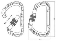 Карабин Вертикаль алюминиевый (Keylock) Размеры 72,5х116 (мм). Вес 88 г. Форма карабина ассиметричная Тип защелки с муфтой резьбовой Форма защелки прямая Макс. нагрузка в продольном направлении (кН) kN 26 Макс. нагрузка в прод. напр. c отрытой защелкой (k 8 Макс. нагрузка в поперечном направлении (кН) kN 8 Ширина раскрытия карабина 22