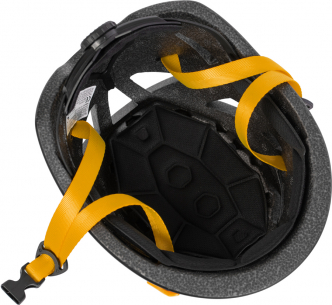 Подбородочный ремень 4-точечной системы подвески, а также регулируемое храповиком оголовье обеспечивают удобную посадку и надежную фиксацию каски на голове. Комфорт пользователя создают съемные дышащие трикотажные накладки.