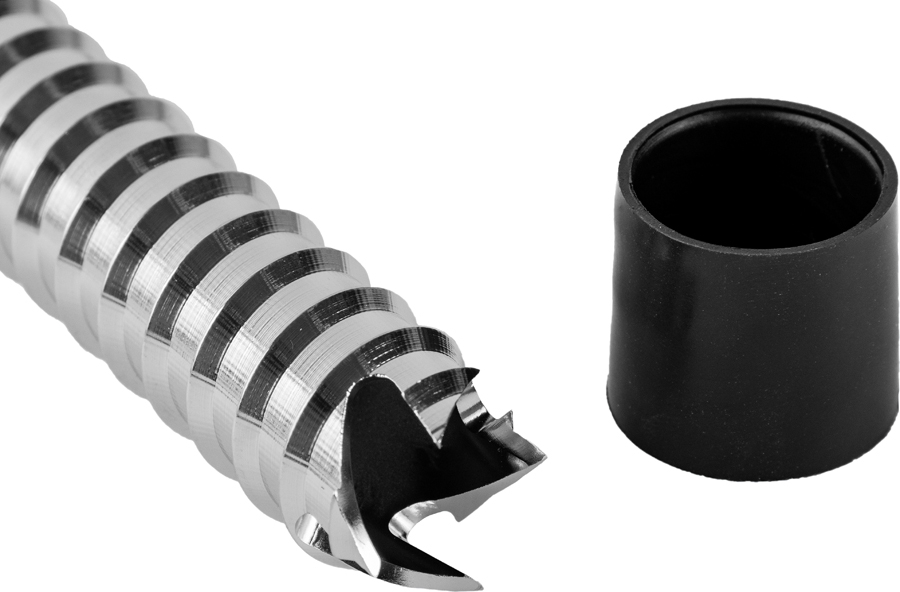 Полированная поверхность цилиндра. Большая площадь и конусообразная резьба снижают риск вырывания ледобура.
