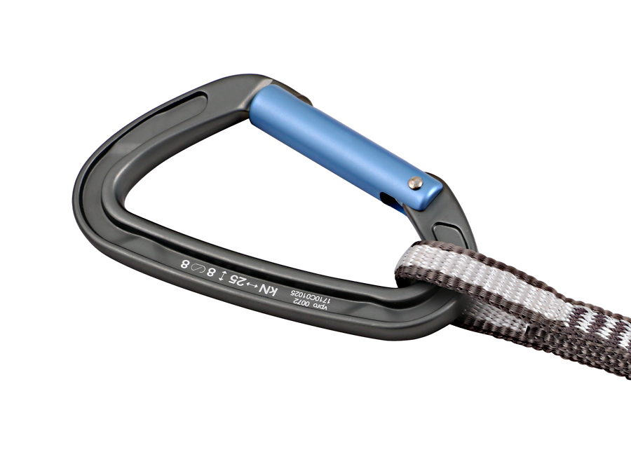 • Оттяжка, выполненная из Dyneema (ширина 10 мм, длина 110 мм), имеет интегрированный фиксатор нижнего карабина, предотвращающий его проворачивание.