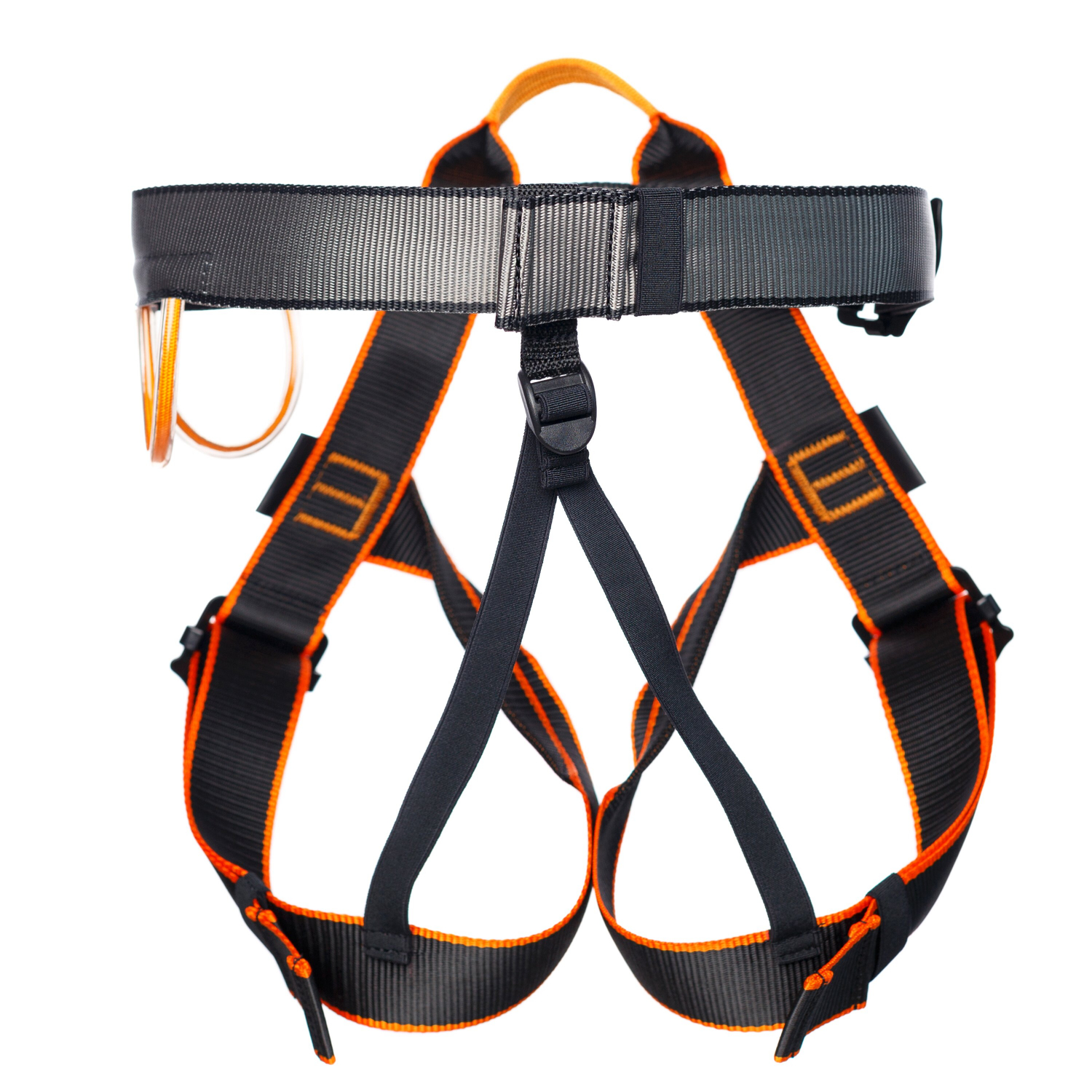 Классическая регулируемая поясная беседка для занятий спортивным туризмом и скалолазанием. Размер беседки регулируется с помощью быстро регулируемых пряжек на поясе и ножных обхватах.