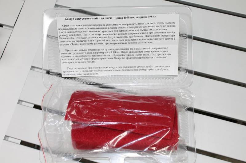Ка́мус — специальная подкладка на скользящую поверхность лыж для того, чтобы лыжи не проскальзывали назад при отталкивании, а также делает комфортным движение вверх по склону. Камус используется охотниками и туристами для передвижения на лыжах по холмистому рельефу или в горах. При этом камус конечно же создает сопротивление и при движении вперёд - не ожидайте от него скоростей, как на беговых лыжах. Наибольший эффект, при движении по пересеченной и гористой местности, дает совместное применение данного камуса с лыжами «Зима» имеющими полозья, предотвращающие боковое скольжение. Крепление данного камуса производится путем приклеивания к скользящей поверхности с помощью резинового клея, например «Клей 88са», а по краям пристреливается с помощью степлерных скоб или мелких гвоздей.