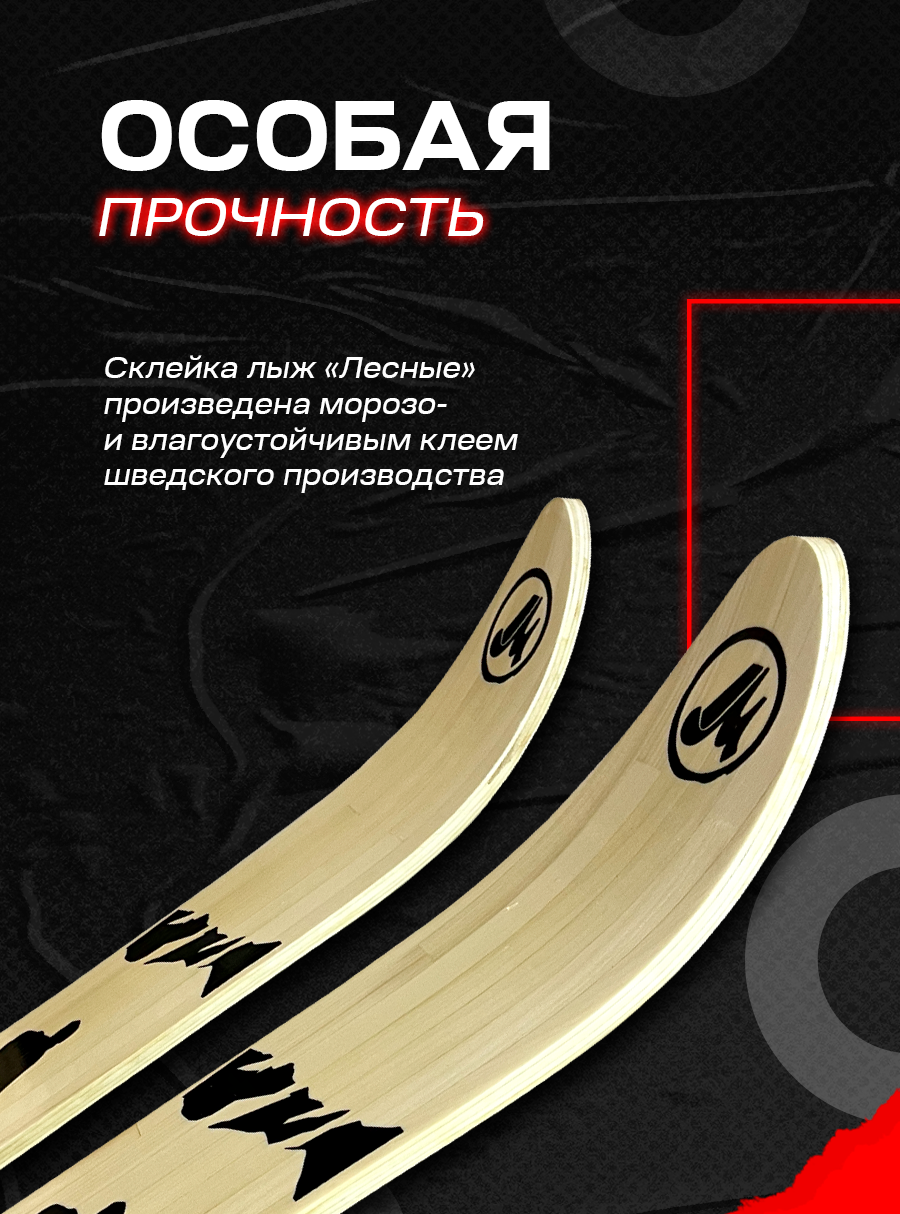 «Лесные» лыжи применяются в зимнее время для передвижения по снегу охотников, рыбаков, туристов, егерей, лесничих. Они изготовлены из березовых и осиновых пород дерева в соответствии с ГОСТом. В отличии от лыж «Охотник» и «Промысловых» лесные изготавливаются меньшей ширины, что дает определенное преимущество при передвижении по густому лесу, а за счет своей легкости «Лесные» лыжи пользуются спросом у любителей зимних прогулок по лесу и дачников.