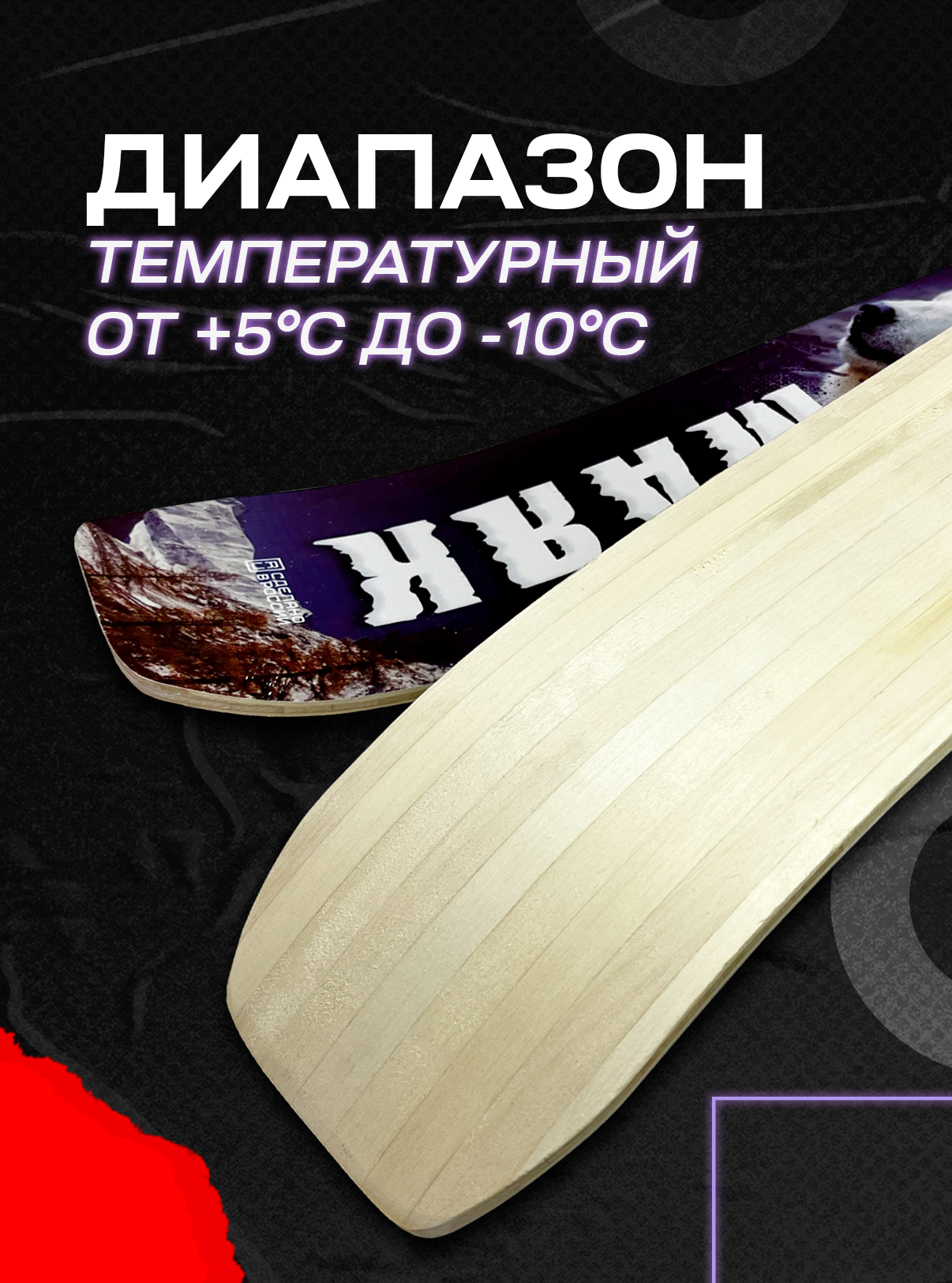 Деревянные лыжи применяются в температурном диапазоне от -10С до -30С. Необходимым условием их эксплуатации является смоление скользящей поверхности (для предотвращения намокания древесины). При этом смоление производится в течение зимы по мере необходимости (истирания скользящей поверхности), но не менее 1 раза в сезон.