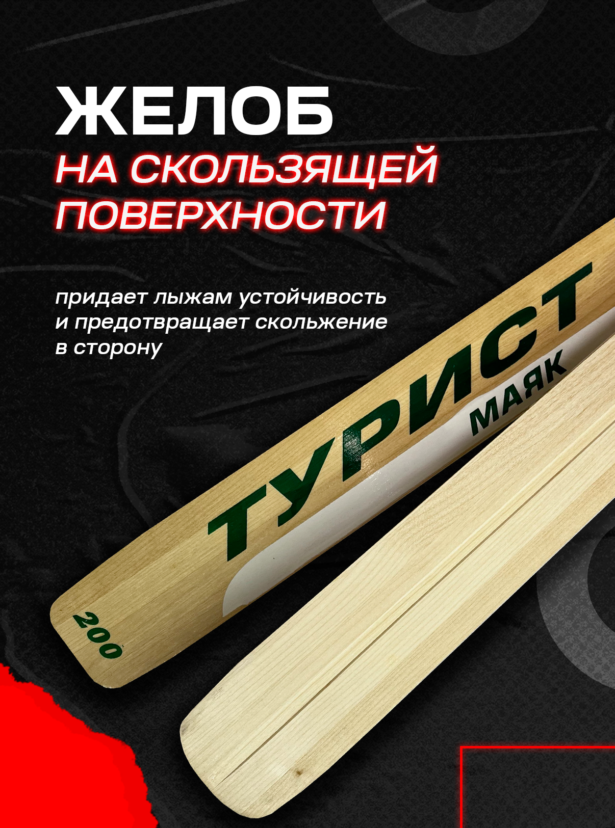 Лыжи Маяк Турист изготовлены из лиственных пород деревьев (береза, осина) согласно ГОСТ 17043-90. Склейка лыж произведена морозо- и влагоустойчивым клеем шведского производства, что придает лыжам особую прочность.
