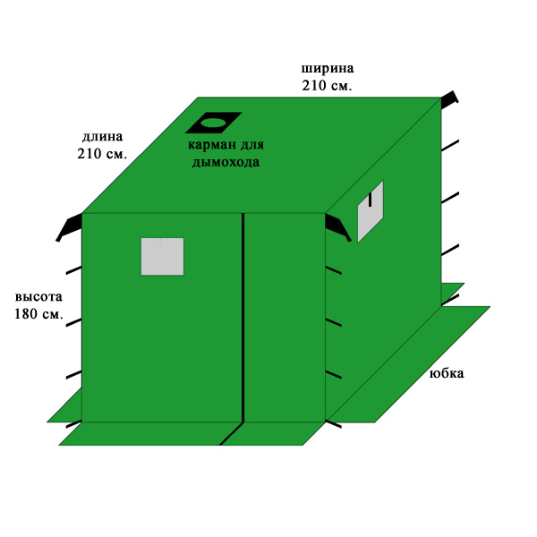 Баня устанавливается на четыре стойки (палки, жерди, весла) во внешние усиленные карманы из ткани Oxford.