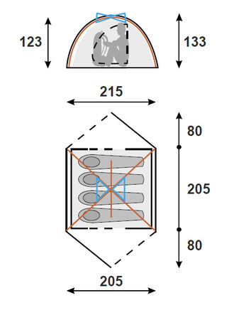 Ветроустойчивость палатки обеспечивают 10 усиленных штормовых оттяжек и крепления тента к каркасу.