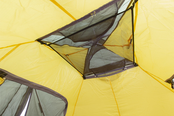 на боковинах тента (открываются и закрываются прямо из внутренней палатки).