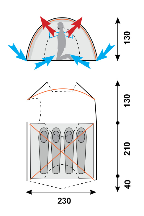 Большая четырехместная палатка для комфортабельного отдыха с двумя входами и двумя тамбурами В большом тамбуре можно расположить стол Световые окна в тамбуре Полочка для вещей Cъемный пол в тамбуре Швы проклеены Входы в палатку дублированы москитной сеткой 6 оттяжек, 18 шпилек Материалы: Материал тента: 190T polyester PU 3000 mm W/R Материал внутренней палатки: 175T Polyester Breathable Материал дна:Terpaulin Материал каркаса: FG POLES 8.2mm FG POLES 11mm Вес полного комлекта: 5.7 кг. Размеры упаковки 60 см Ø 23 см