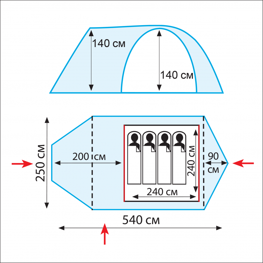 • Тент 100% Polyester 75D/190T RipStop PU, 6000 мм в.ст.