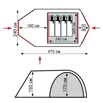 Двухслойная туристическая палатка с огромным тамбуром для вещей, в который поместится даже велосипед. - Внешний тент палатки устойчив к ультрафиолетовому излучению и имеет пропитку, задерживающую распространение огня. - Швы герметизированы термоусадочной лентой. - Входы в спальное отделение продублированы москитной сеткой c cистемой молний OneTouch, дверь или сетка открывается в одно касание. - Два входа во внутренней палатке обеспечивают превосходную вентиляцию и комфортный сон в теплое время года. - Внутри палатки имеются удобные карманы и подвесная полочка для мелких вещей. - Крючок для крепления фонаря. - Вместительный тамбур для вещей или походной кухни. - Три входа в палатку.