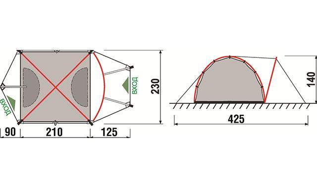 • Материал дна Polyester 150D Oxford 8000 мм в.ст.