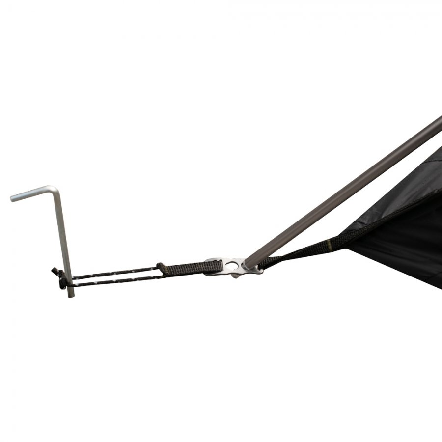 Дополнительная консольная дуга увеличивает площадь и внутренний объем тамбура, повышает ветроустойчивость и ветрообтекаемость палатки.