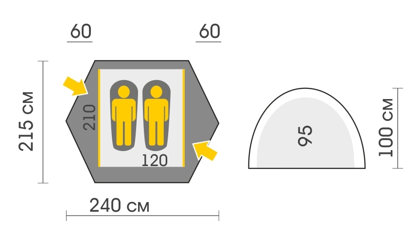 • Материал дна Polyester 195T/80D, 8000 мм в.ст.