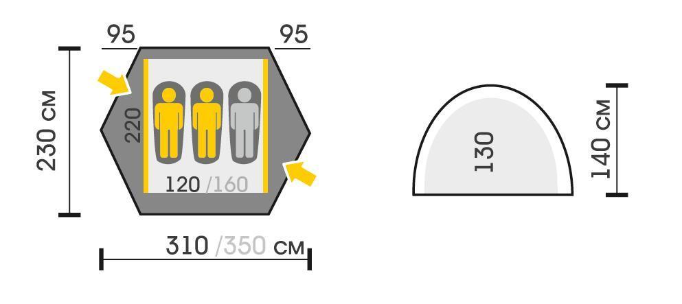 Современная полубочка с двумя входами, увеличенным внутренним объемом и внешним каркасом. Палатка для туристических маршрутов среднего уровня. ХАРАКТЕРИСТИКИ: - Внешний тент устойчив к UV излучению; - Внешний тент имеет противоискровую обработку; - Два вентиляционных клапана; - Многоточечная система оттяжек; - Оттяжки со светоотражающими элементами; - Все швы проклеены; - Крючок для фонарика; - Ремонтный набор в комплекте.