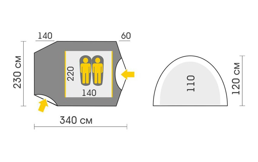 Трех-дуговая палатка для велопоходов и серьезных туристических маршрутов с увеличенным тамбуром, юбкой и двумя входами Talberg Sund pPro 2 – отличный вариант для велосипедного и пешего туризма. Простая и быстрая установка, Вы можете установить палатку в течение 3-5 минут. Рассчитанная на двух человек палатка, имеет идеальное соотношение объем-вес и удобную сумку для переноски. Благодаря использованию дополнительной дуги и ассиметричного входа в тамбур, в палатке можно разместить лежа пару велосипедов и необходимое количество снаряжения, а так же приготовить пищу на горелке, во время непогоды.