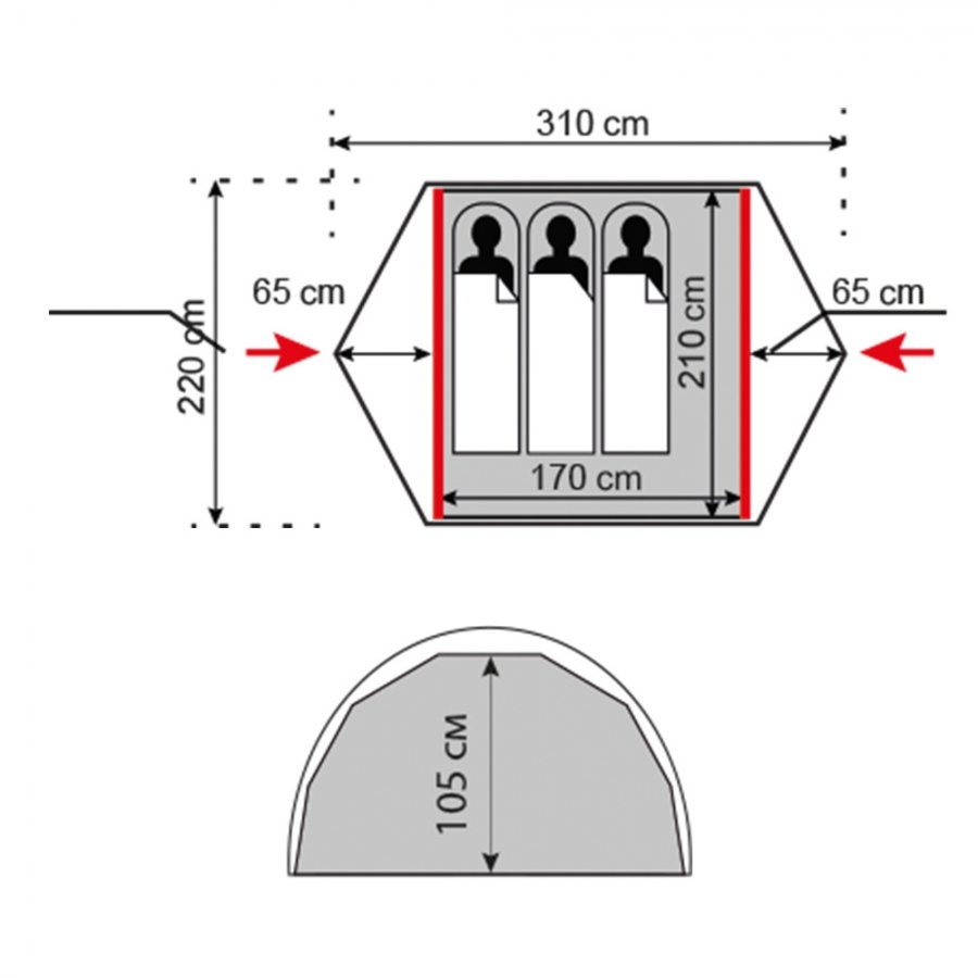 Свободностоящая хабовая конструкция каркаса обеспечивает очень быструю, простую , интуитивно понятную установку, больший, по сравнению с палатками других конструкций, жилой объём спального отсека и повышенную ветроустойчивость.