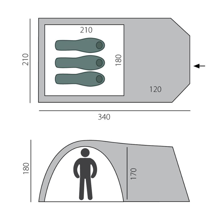- Классическая двухслойная кемпинговая палатка с двумя входами - Вход спального отделения продублирован москитной сеткой - Просторный тамбур для отдыха всей семьей - Хорошая вентиляция в спальном отделении обеспечивается вентиляционным окном в куполе тента - Простая интуитивная установка Вес, кг 6 Внешние размеры, см 340х210х180 Внутренняя палатка 100% полиэстер Водостойкость дна 6000 Водостойкость тента, мм в.ст. 4000 Высота 180 Каркас фибергласс 9,5 мм Кол-во входов 2 Кол-во комнат 1 Кол-во мест 3 Кол-во слоев 2 Кол-во тамбуров 1 Комплект Колышки, оттяжки, инструкция. Упаковка: тканевая сумка Материал дна Армированный полиэтилен (терпаулинг) Материал каркаса Фиберглас Размер внутренней палатки, см 210х180х170 Размеры в упакованном виде (ДхШхВ), см 67х27х20,5 Сезон/назначение демисезонный Тент 100% полиэстер 75D/190T PU W/R Юбка нет