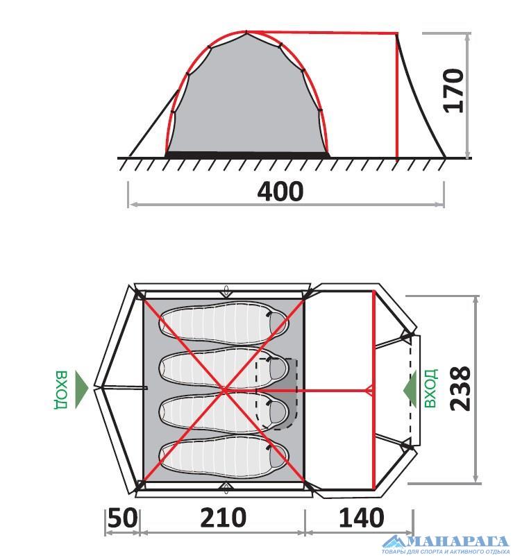 - Москитная сетка на входе во внутреннюю палатку. Большие вентиляционные окна.