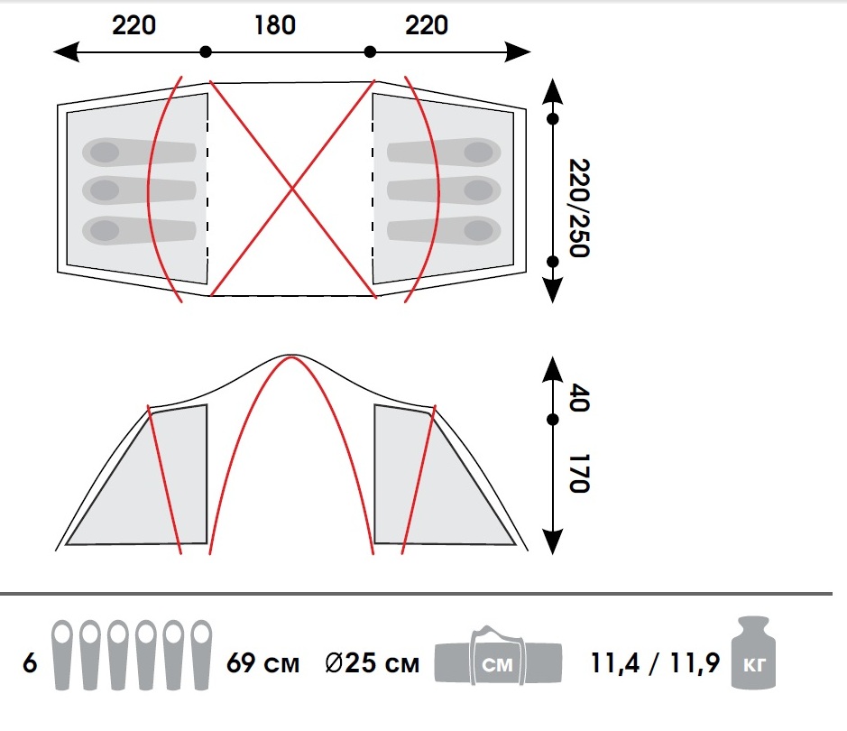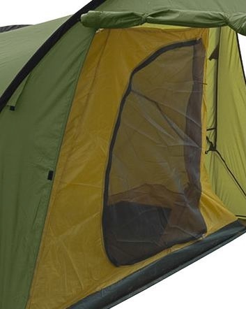 Классическая кемпинговая палатка с большим тамбуром Два трех-четырехместных спальных отделения Отличная вентиляция Возможность установки палатки с одним спальным отделением или вообще без них Палатки серии Caravan комплектуются стойками для навеса «прихожей» Цветовые исполнения: хаки и светло-зеленый Материал тента: 190T polyester PU 4000 mm W/R Материал дна: Terpaulin Материал внутренней палатки: 175T Polyester Breathable Вес: 11,4кг Габариты упаковки: 69см*23