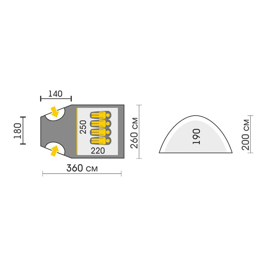 Входы в тамбур и спальное отделение продублированы высококачественной москитной сеткой, способной защитить даже от самой мелкой мошки.