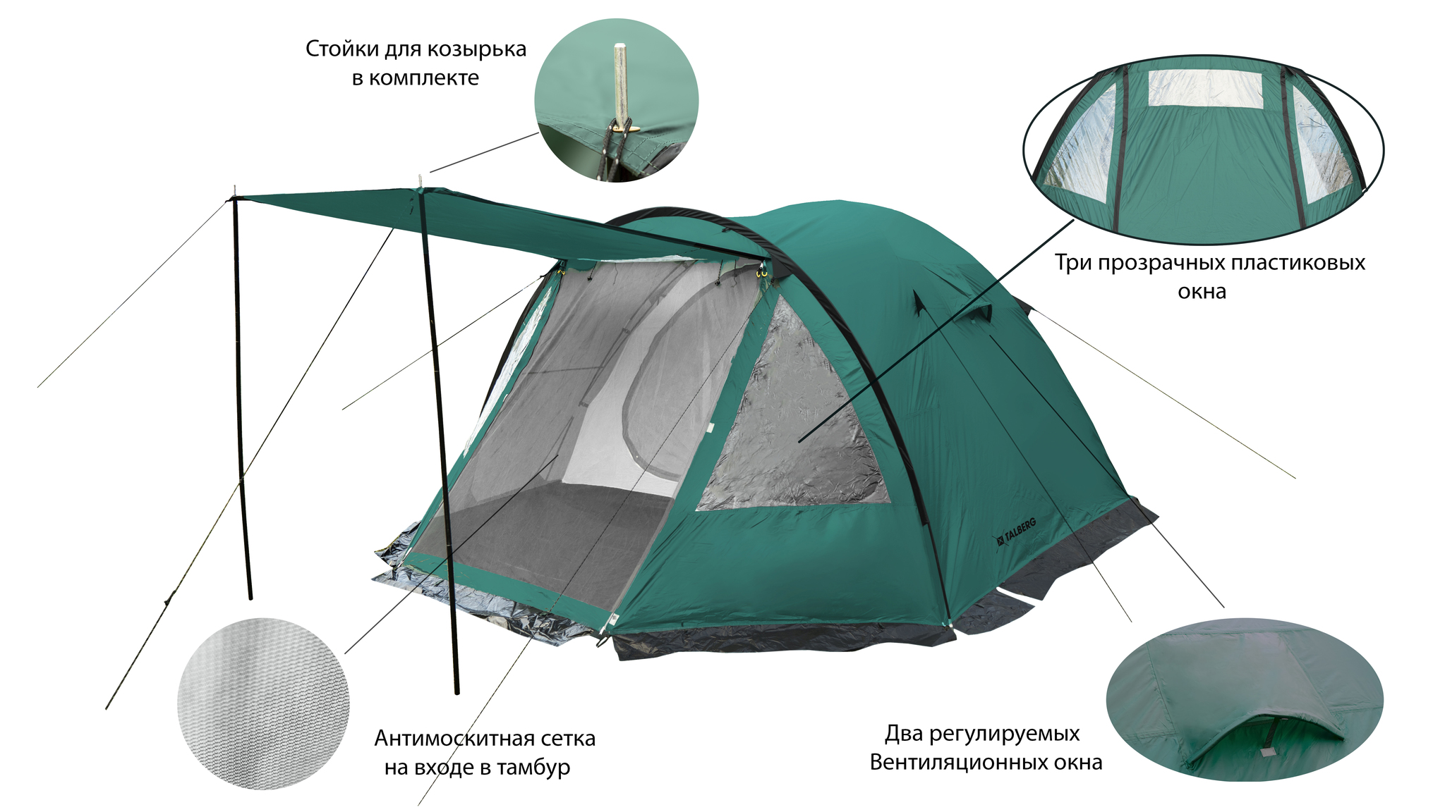 - Внутренняя палатка из «дышащего» Polyester обеспечивает отличную вентиляцию и испарение конденсата.