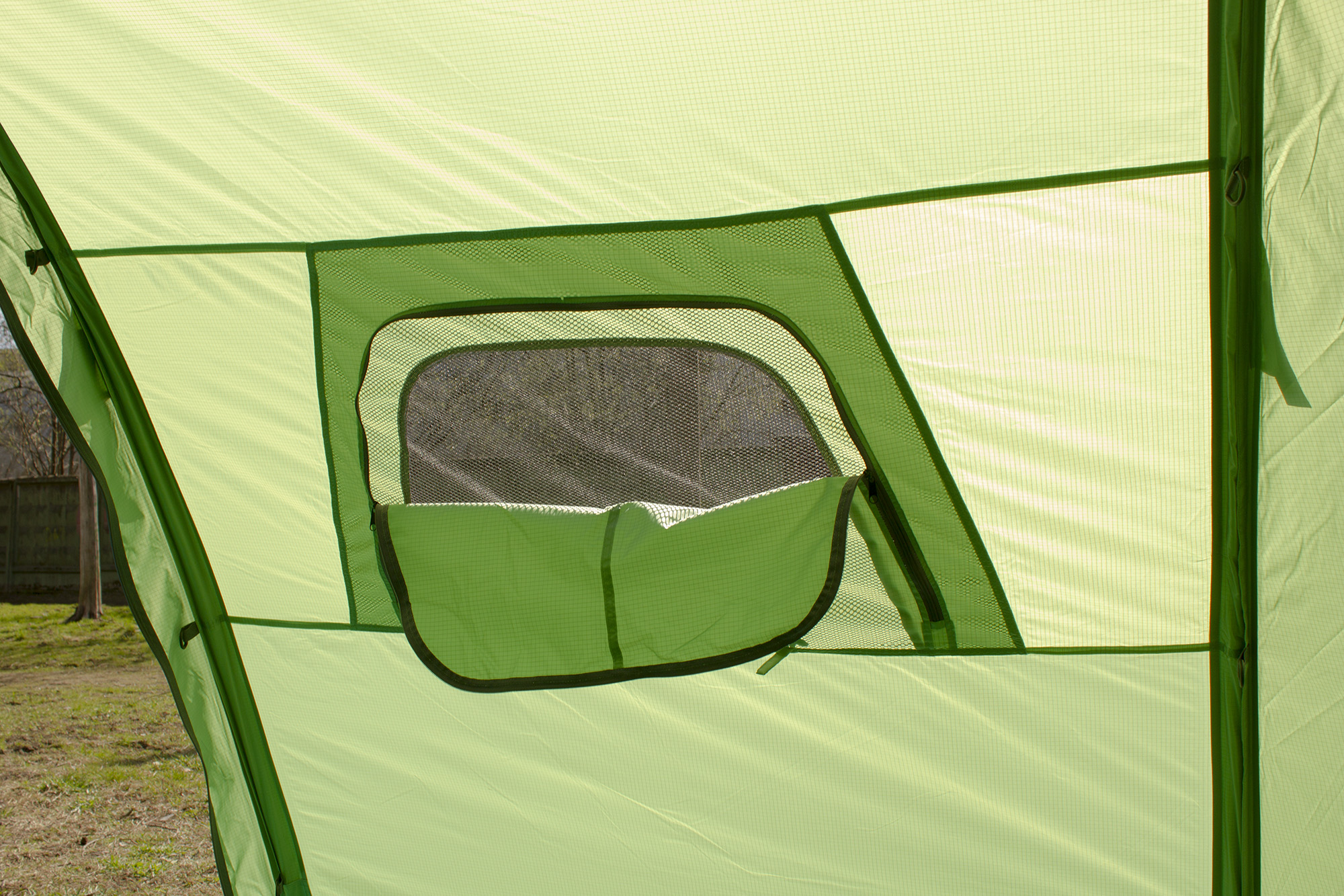 Материал карманов для каркаса палатки выполнен из PolyOxford 420D PU. Данное конструкторское решение существенно снижает риск повредить палатку при установке каркаса, а также от порывов ветра, во время эксплуатации.