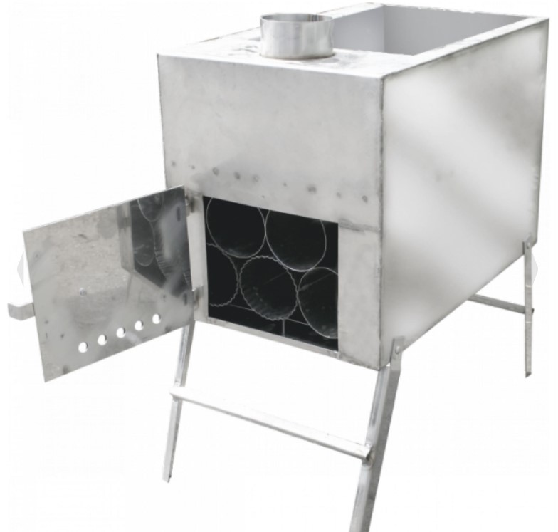 Печь туристическая универсальная. Универсальная походная печка предназначена для приготовления пищи и обогрева в закрытых помещениях - палатках, землянках и т.д. Можно использовать как баню. За счет конструктивных особенностей увеличена теплоотдача и уменьшается время приготовления пищи. Печь сконструирована так, чтобы отвод тепла шел на стенки, а не улетучивался в трубу. Высота ножек не нарушает травяной покров на месте установки. Ножки и труба складываются для удобства транспортировки. Печь упакована в чехол. Габаритные размеры – 400х250х300 мм, Трубы – 70 мм, Материал – нержавеющая сталь AISI 430. Вес – 7,5 кг.