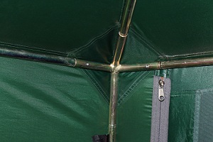 Тент выполнен в форме шестигранника размерами 4х3,5 м и высотой 2,2 м в высшей точке.