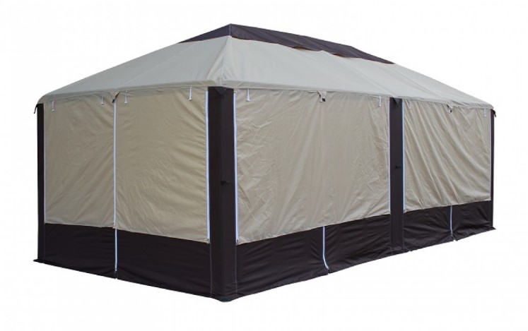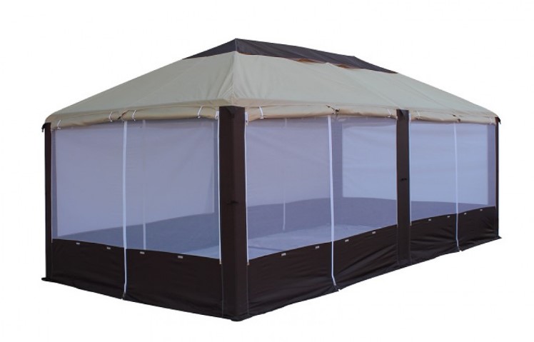 Отличительной особенностью шатра является наличие раздвижных москитных стенок.