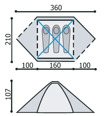 Каркас помещен в карманы тента, внутренняя палатка пристегивается с внутренней стороны. В эксплуатации внутренняя палатка может оставаться пристегнутой постоянно, что, существенно сокращает время сборки.