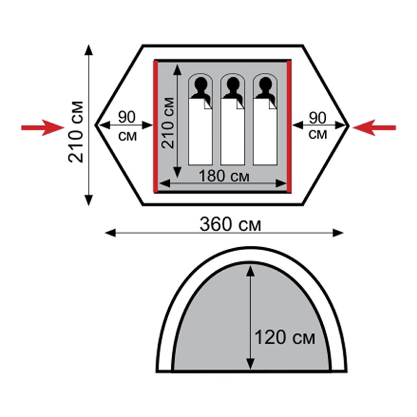 Два входа обеспечивают превосходную вентиляцию и комфортный сон в теплое время года.