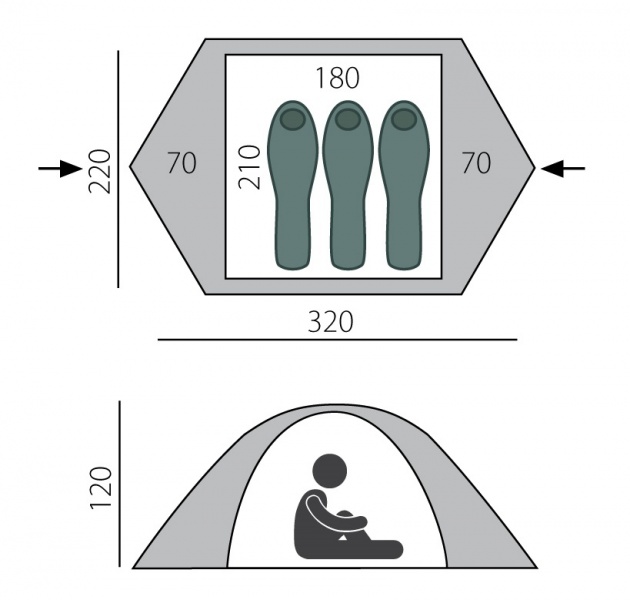 - Двухслойная палатка с двумя входами - Внешний тент палатки устойчив к ультрафиолетовому излучению - Внешний тент имеет пропитку, задерживающую распространение огня - Два вентиляционных клапана - Светоотражающие оттяжки и элементы на вентиляции - Все швы проклеены - Идеальна для туристических походов в весеннее, летнее и осеннее время. Размер в упаковке (см): 57х17х14,5 Материал тента: 100% полиэстер 75D/190Т RipStop, 6000 мм в.ст. Материал дна: 100% полиэстер 75D/190Т, 8000 мм в.ст. Внутренняя палатка: 100% полиэстер Материал каркаса: Durapol 8,5 мм Внешний размер, см: 320х220х120 Размер спального места, см: 210х180 Количество входов: 2 Количество тамбуров: 2 Количество мест: 3 Сезон: Демисезонный Вентиляция: Два вентиляционных клапана Юбка: Нет