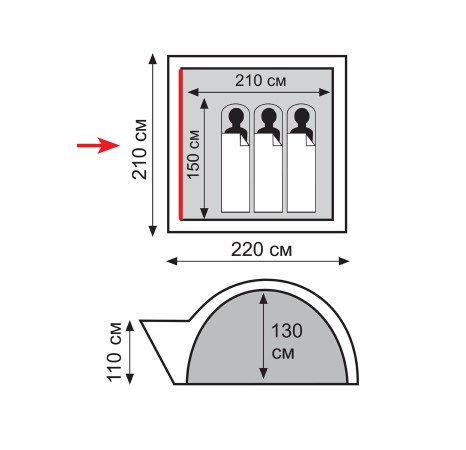 • Тент 100% Полиэстер 75D/190T RW PU 3000 мм в. ст.
