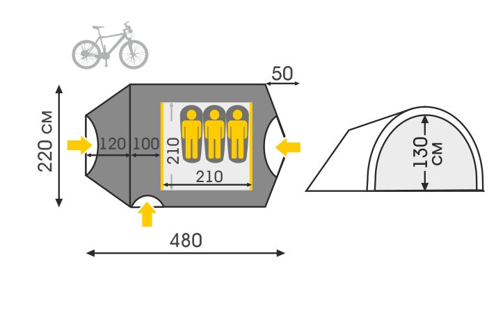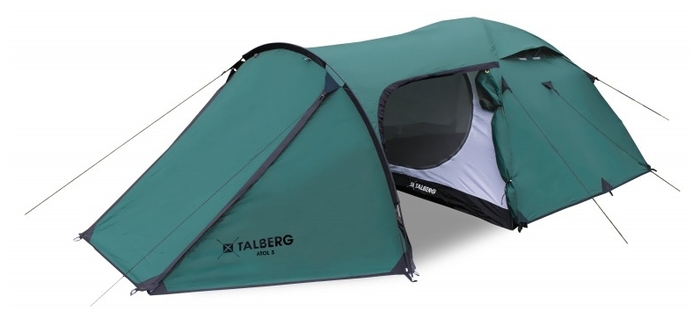 Двухслойная палатка с огромным тамбуром Talberg Atol 3. Особенности: - Внешний тент устойчив к UV излучению; - Внешний тент имеет противоискровую обработку; - Три входа для оптимальной вентиляции; - Два вентиляционных клапана; - Многоточечная система оттяжек; - Оттяжки со светоотражающими элементами; - Все швы проклеены; - Крючок для фонарика; - Ремонтный набор в комплекте. Характеристики: Размеры: (ШxДxВ): 480 x 220 x 140 (130) см Размеры в упаковке: 59х17х17 см Вес: 4.5 кг Внешняя палатка: Polyester RipStop 190Т/75D 5000 mm Пол: Polyester 195T/80D 7000 mm Внутренняя палатка: breathable Polyester Дуги: HQ FiberGlass 8,5 мм Кол-во человек: 3 Входы: 3 Сезонность: весна, лето, осень