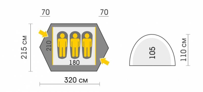 Два входа обеспечивают превосходную вентиляцию и комфортный сон в теплое время года.