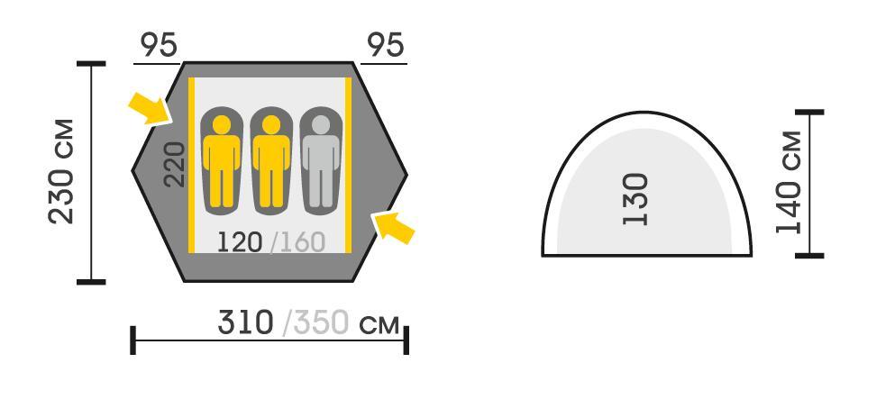 - Внутренняя палатка из «дышащего» Polyester обеспечивает отличную вентиляцию и испарение конденсата.