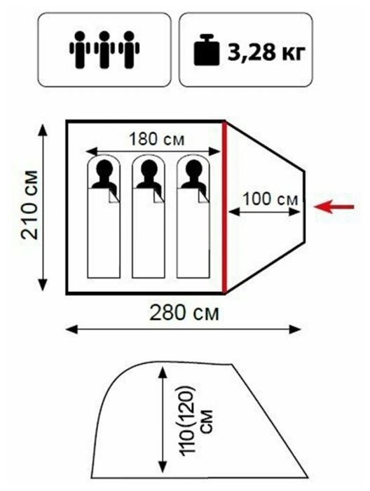 • Размер внутренней палатки, см 180х210х120
