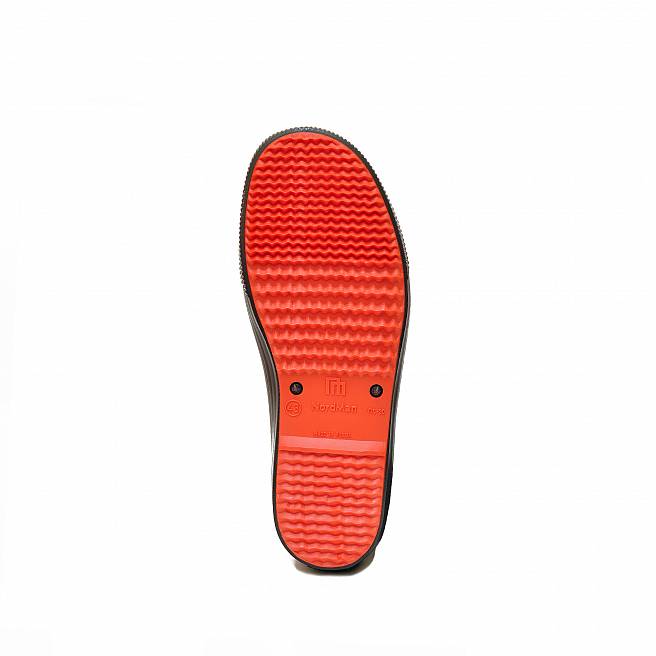Мужские резиновые ботинки Nordman Beat выполнены из водонепроницаемого экологичного материала, имитирующего изделие из кожи. Изнутри в ботинок встроена эластичная вставка и специальная петелька для удобства обувания. Ботинки легко надеваются, но при этом плотно сидят на ноге и не болтаются. Это помогает избежать появления мозолей и травм голеностопа. Утепления нет – можно носить от +10°C (+5°C с термоносками). Основной материал – полностью водонепроницаемый и износоустойчивый ПВХ. Носок и задник имеют рифлёные уплотнения для дополнительной защиты. Подошва с ассиметричным протектором – не скользит на влажных и гладких поверхностях. Ботинки лёгкие и комфортные. Идеально подходят для ежедневной работы на участке. Сдержанный коричневый оттенок разбавляет яркая оранжевая подошва и внутренний слой того же тона. Современный дизайн позволяет сочетать их с джинсами или брюками в городских образах в стиле casual. Сезон Демисезон, Лето Температура эксплуатации до +5℃ Материал подошвы ПВХ Материал верха ПВХ Материал подкладки Без подкладки Материал стельки Полиэстер Средняя высота 13 см Средний вес пары 1 кг