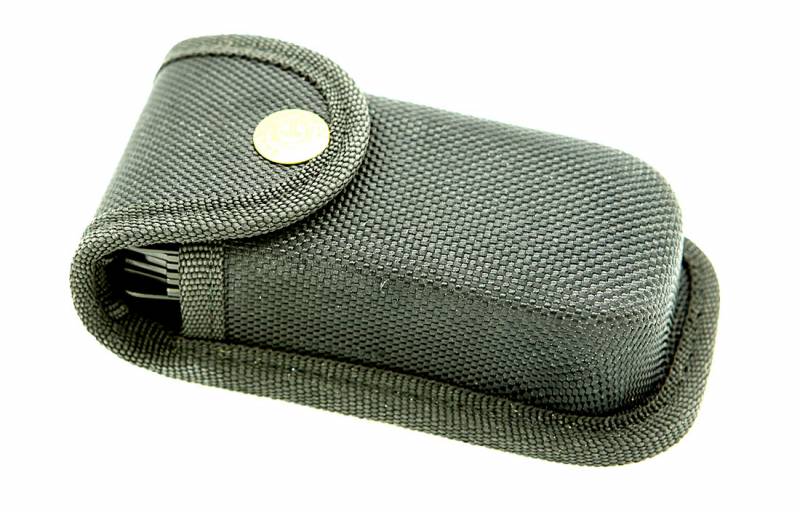 Поставляется в подарочной упаковке. В комплекте нейлоновый чехлол, в который помещается мультитул и сменные биты. Все инструменты мультитула имеют защитное черное покрытие.
