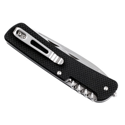 Остальные инструменты в модели Ruike L32 не менее практичны. Это небольшая пила для дерева, стропорез, две отвертки прямого сечения, приспособление для очистки от изоляции проводов. Ну а любителей пикников на природе точно порадует наличие открывалки для бутылок и штопора. Помимо того, нож оснащен небольшим стеклобоем на торцевой стороне рукоятки и металлическим кольцом для крепления темляка.