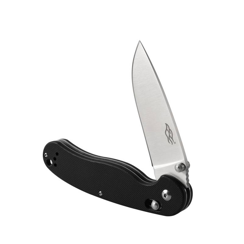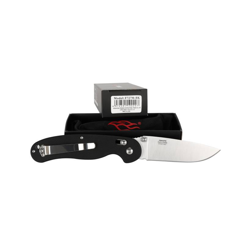 Удобство ножа Firebird 727M заключается в том, что это складная модель. Он без труда поместится в любом рюкзаке или даже в кармане одежды. Длина ножа в этом состоянии составляет всего 12 см. Зато при открывании его размеры увеличиваются до 21 см, из которых 8,9 см приходится на лезвие. Клинок заточен заточкой гладкого типа, что также влияет на его универсальность. Толщина клинка в самом широком месте составляет 0,35 см. Для его изготовления производители использовали одну из наиболее сбалансированных марок нержавеющей стали — 440С. Такой сплав хорошо противостоит образованию ржавчины и появлению других признаков коррозии. При этом, он достаточно прочный — 58 HRC, а также недорогой.