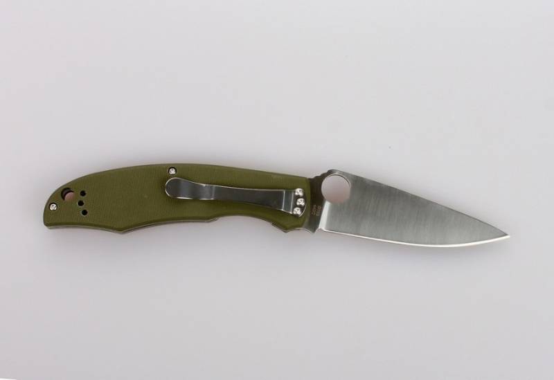 Для клинка производители выбрали хорошо известную марку стали — 440С. Это нержавеющий сплав высокого качества, который широко используется для производства ножей среднего ценового сегмента. Эта сталь позволяет произвести закалку до твердости около 58 единиц в соответствии со шкалою Роквелла. Длина клинка ножа равна 9,5 см при толщине его обуха 0,33 мм. Поверхность клинка отшлифованная и Режущая кромка получила классическую ровную заточку, которая используется в работе практически с любыми материалами.