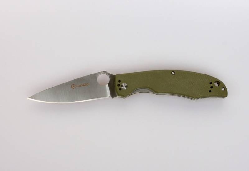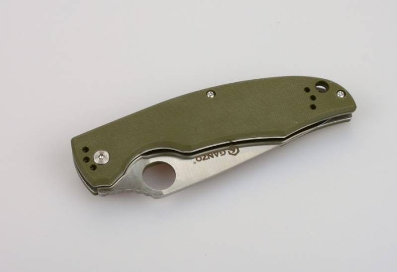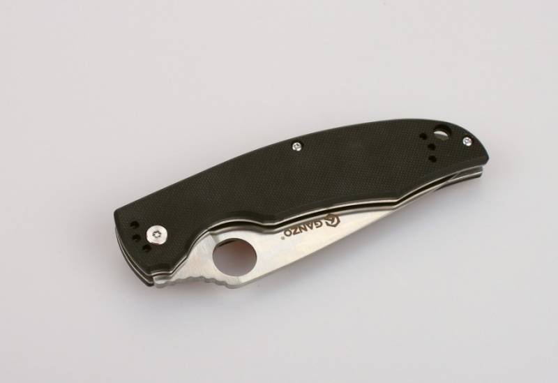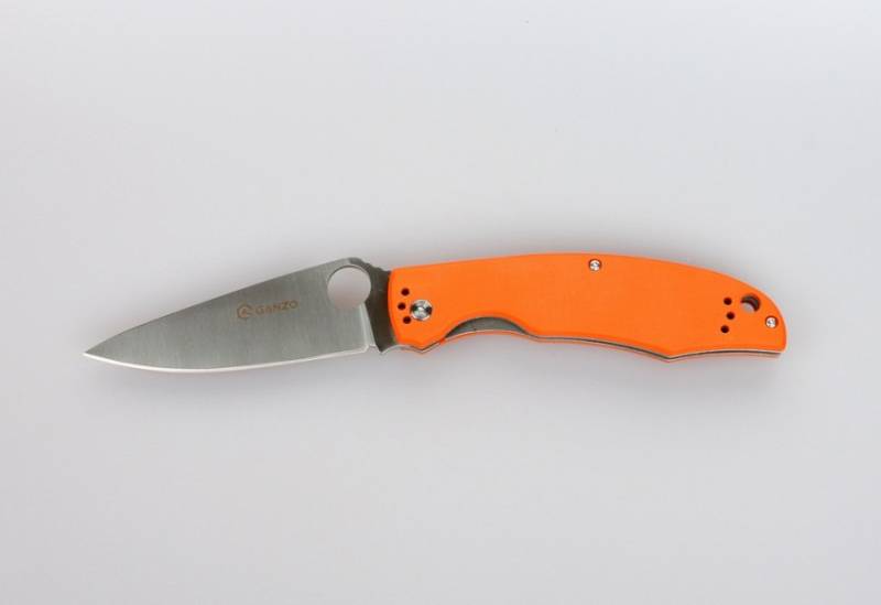 Складной нож Ganzo G732 с первого взгляда привлекает внимание дизайном. У него широкий клинок необычной формы с отверстием круглой формы, которое выполняет роль шпенька для открывания. Рукоятка подогнана под форму руки, а ее цвет покупатель выбирает из четырех возможных вариантов. Но внимания заслуживает не только дизайн ножа, но и материалы, из которых он изготовлен.