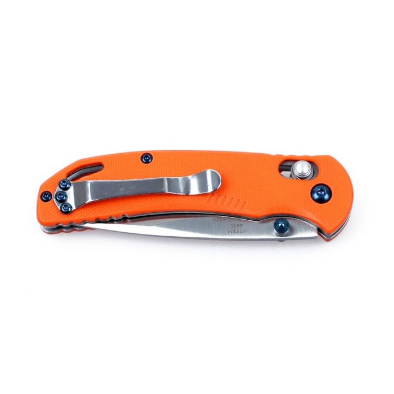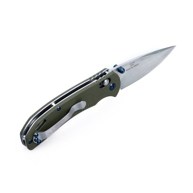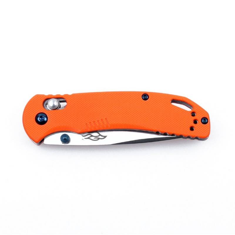 В открытом положении, размер модели Firebird F753M1 равен 17.8 см. Рукоятка этого ножа выполнена с использованием композитного материала G10. Он получен путем соединения стекловолокна с эпоксидными смолами. Этот материал совсем легкий, но по прочности практически не уступает стальной основе рукоятки. Мелкая текстурная накатка на стеклопластике помогает крепко держать нож в руках. Кроме того, нож можно дополнительно пристраховать при помощи темляка, который, при желании, вдевается в отверстие на ручке Firebird F753M1. Клипса же, используемая для ношения на ремне, изготовлена из стали.