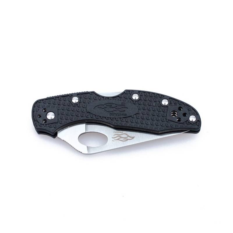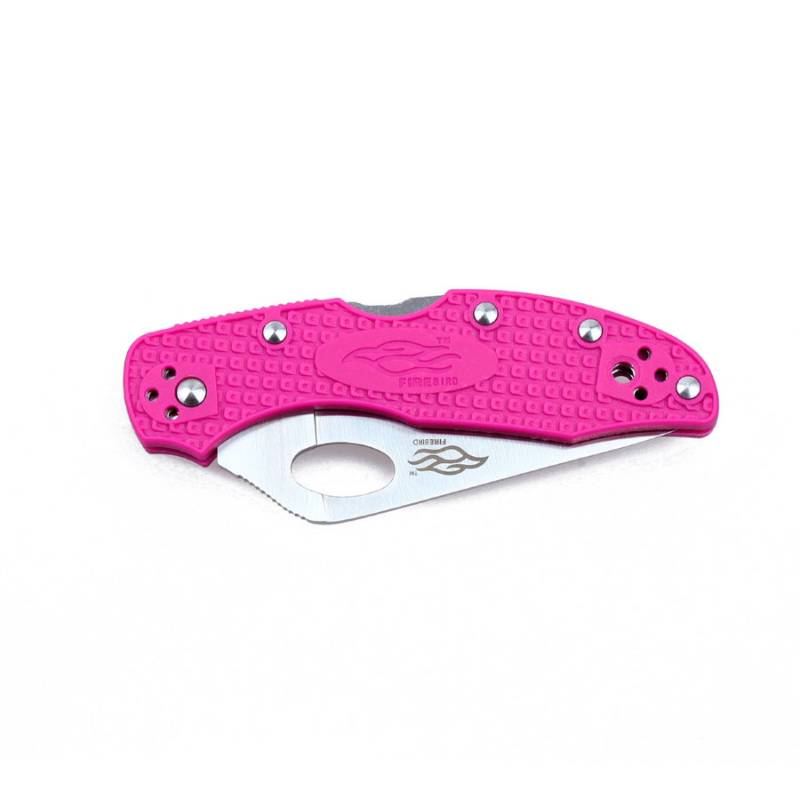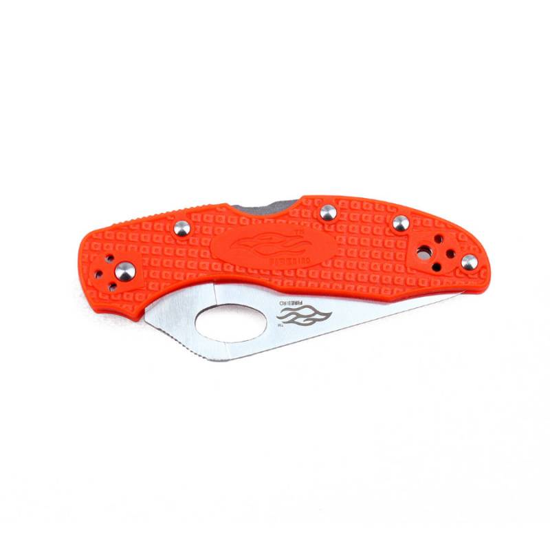 Лезвие Firebird F759M сделано из стали 440С &mdash одной из самых востребованных в сфере производства ножей. Это нержавеющая сталь с таким балансом составляющих элементов, что она может очень долго быть острой после заточки. Режущая кромка ножа с заводского конвейера поступает уже качественно заточенной и полностью ровной. В дальнейшем, ухаживать за таким ножом можно и при помощи домашних точильных инструментов, выполняя заточку самостоятельно. Дизайн Firebird F759M предполагает, что вместо шпенька для открытия клинка будет использоваться отверстие на лезвии. Поэтому часть клинка около рукоятки выступает за пределы высоты ручки ножа. В открытом виде лезвие выглядит очень оригинально.