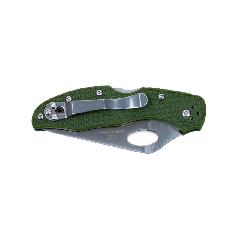 Не менее эффектна и сделанная из наполненного стекловолокном нейлона ручка ножа. Она может быть окрашенной в черный, голубой, оранжевый или розовый цвет (вариант покупатель выбирает сам). Помимо накатки для препятствия скольжению, на ее поверхность нанесен логотип бренда. Кроме того, к ручке ножа прикручена клипса, чтобы пользователь мог носить его на ремне. Положение этой клипсы также можно регулировать на собственное усмотрение.